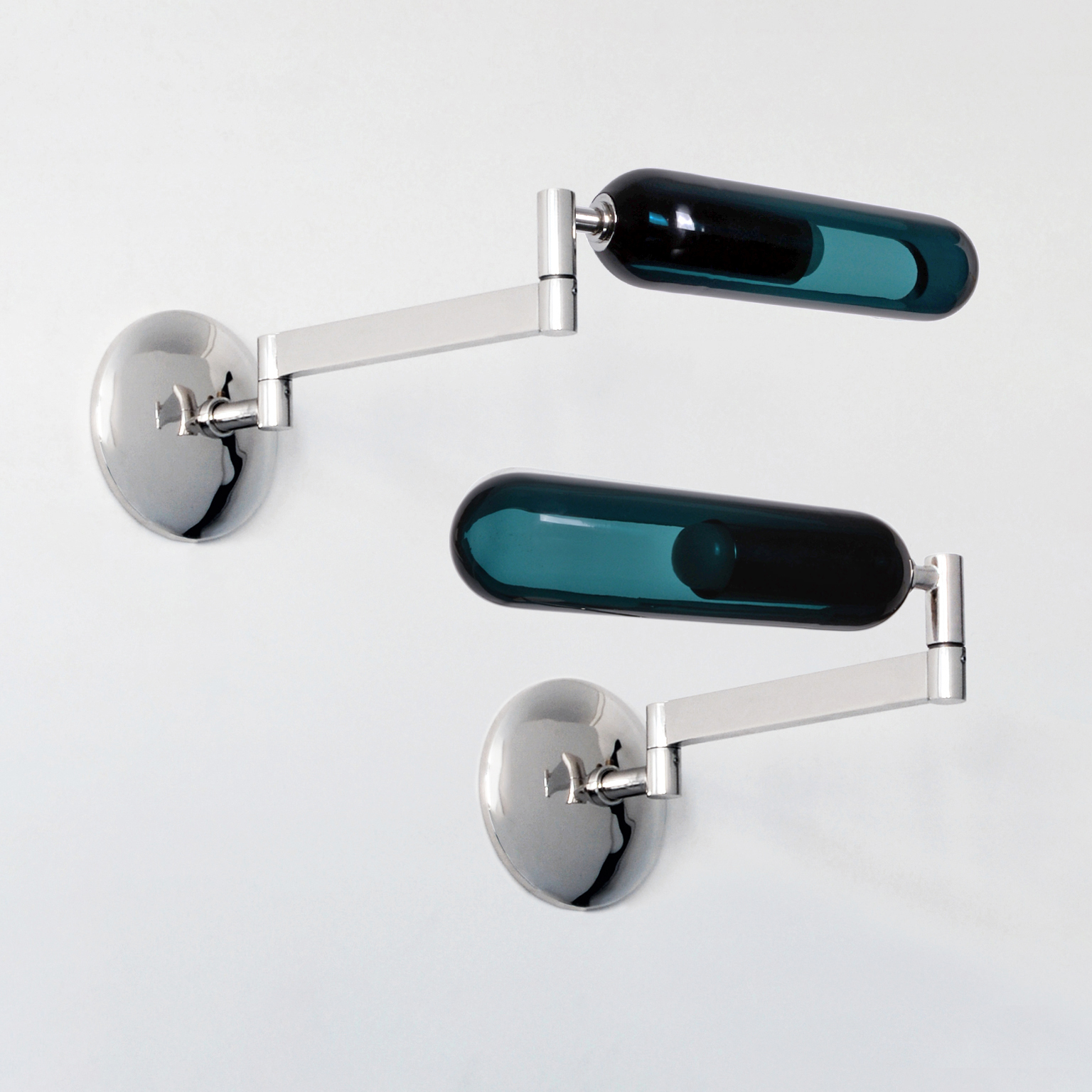 Nickel-plated brass, green glass.