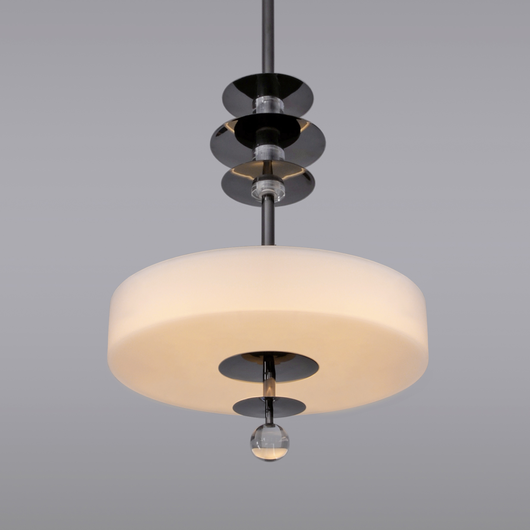 black nickel-plated brass, glass, opal glass, 5 × E14 sockets