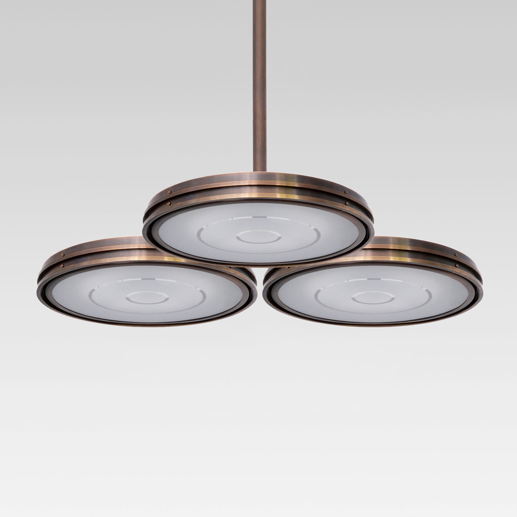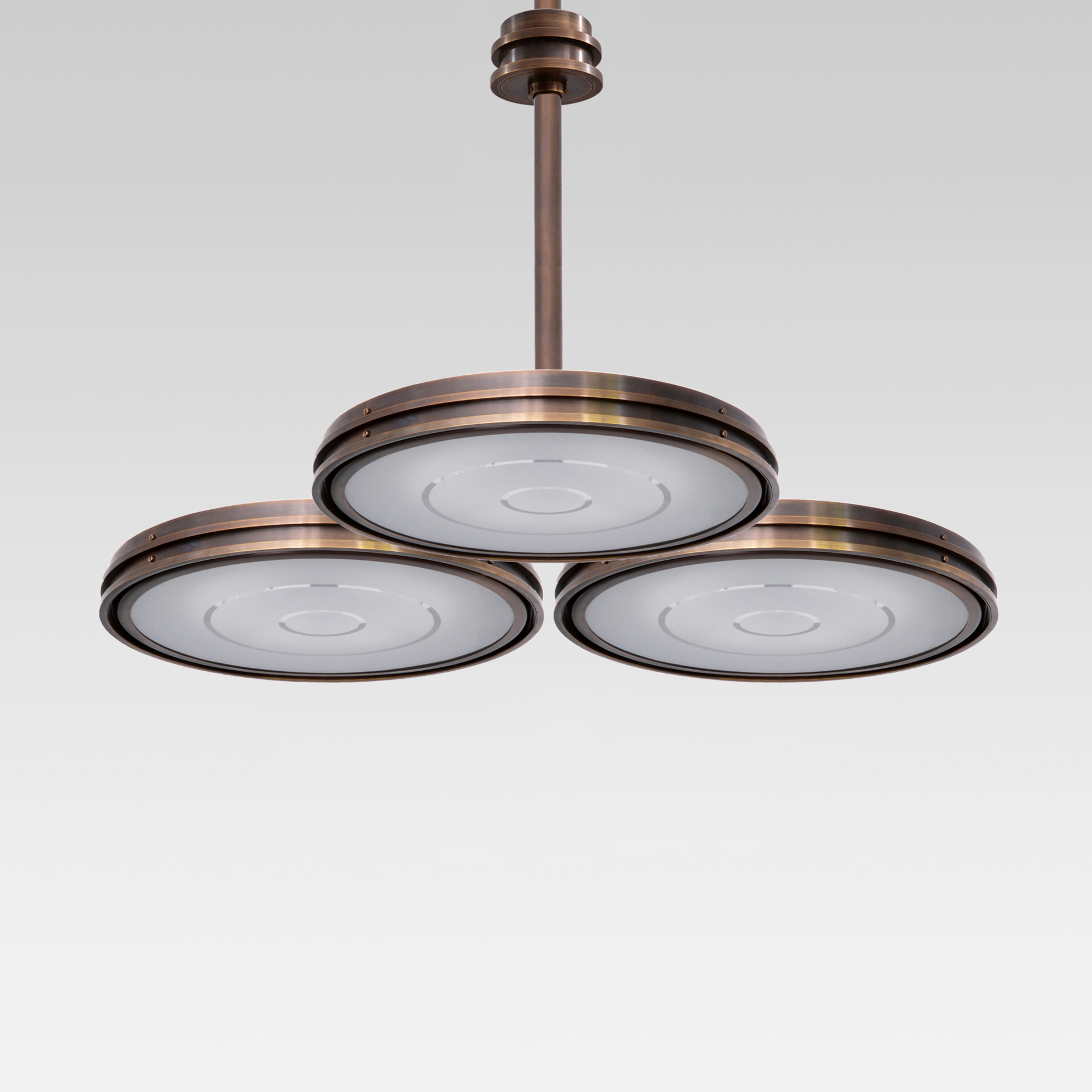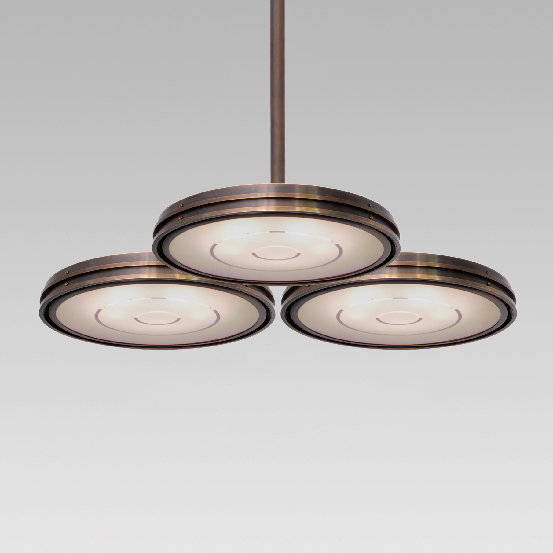 dunkel patiniertes Messing, Opalglas, partiell geätztes Glas/