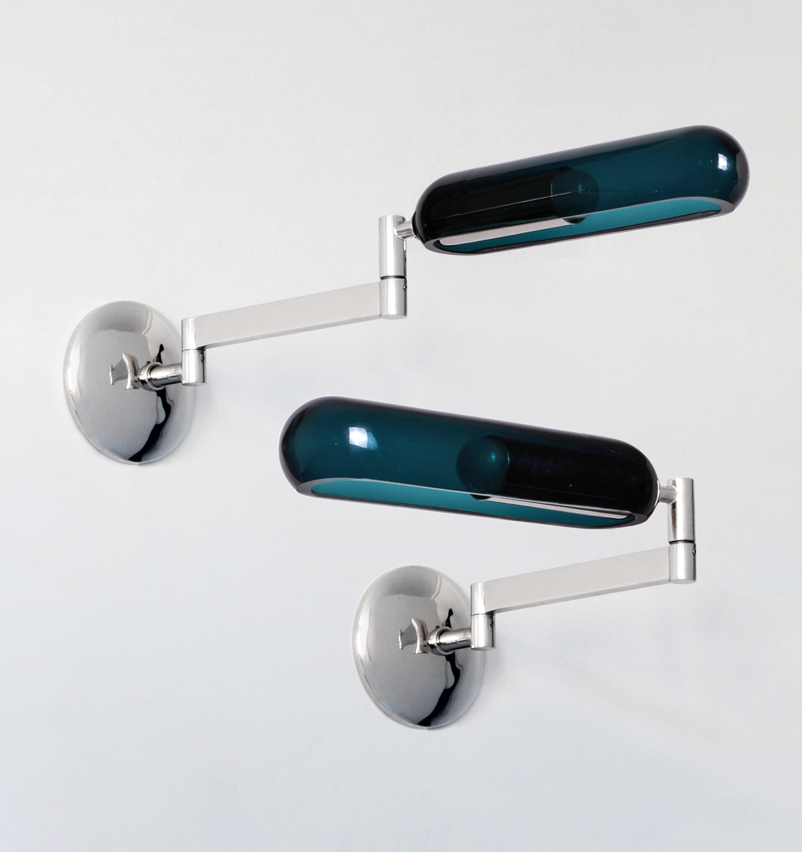Nickel-plated brass, green glass.