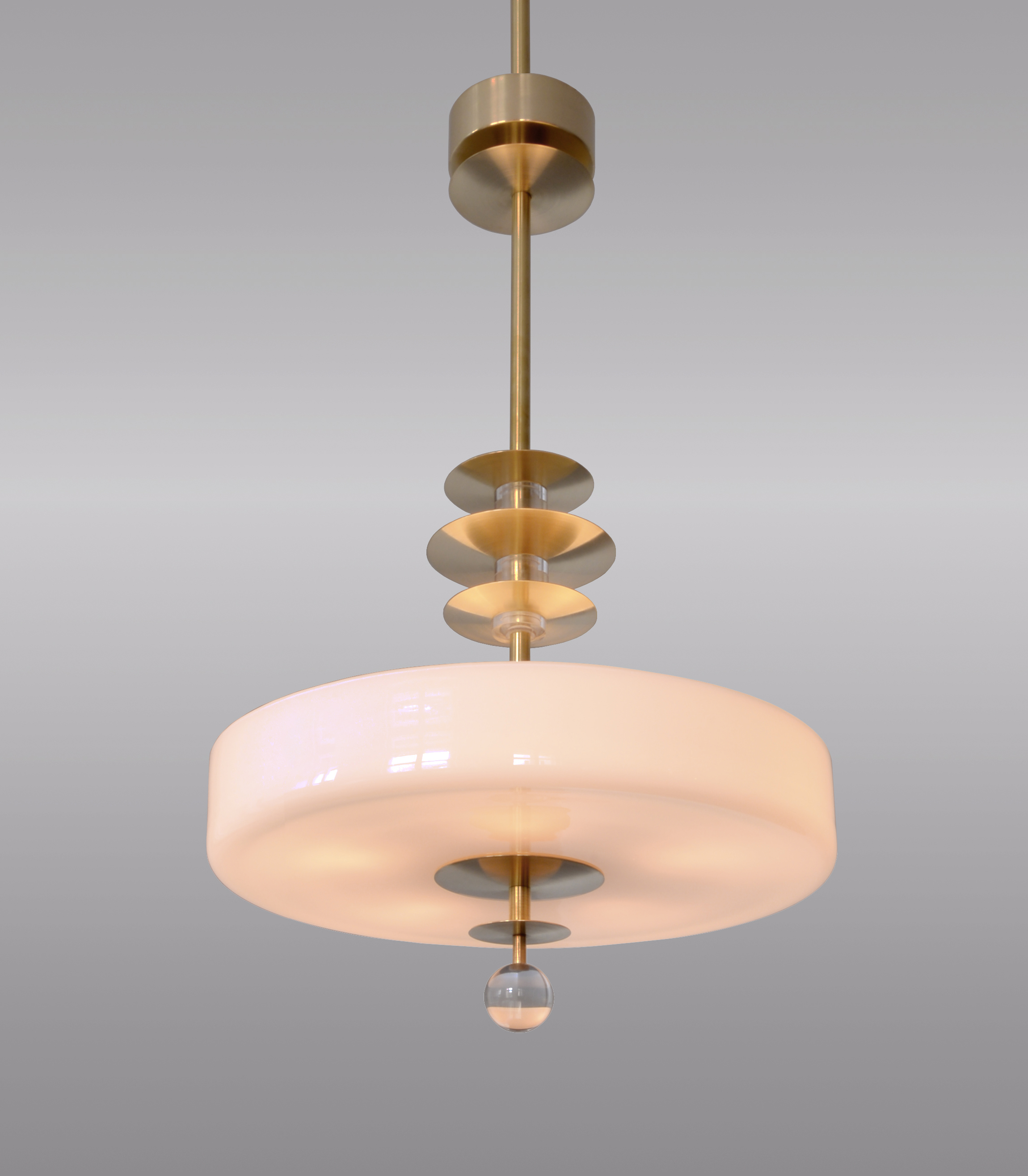 brushed brass, glass, opal glass, 5 × E14 sockets
