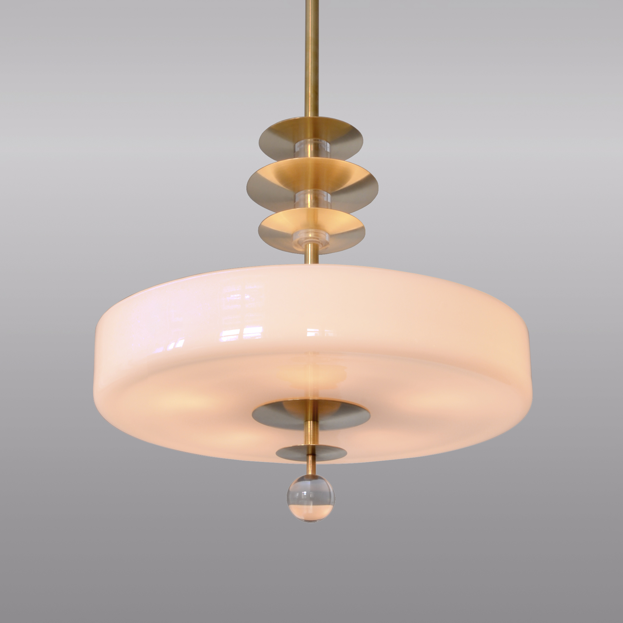 brushed brass, glass, opal glass, 5 × E14 sockets